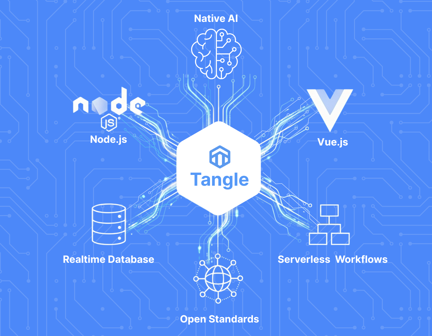 Tangle builds enterprise class applications easily and quickly, with key features enterprise systems require like deep access control, automation and flexible integration to other systems built in as standard.